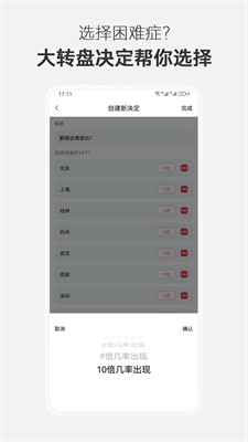 该应用模拟真实物理转动效果,提供高度还原的视觉与听觉反馈,确保每一次旋转都充满期待感。无论是决定今天吃什么、去哪儿玩,还是游戏中谁先出手,它都能以最公平的方式帮您拍板。同时支持创建个人决策库,方便重复调用常用选项,提升使用效率。