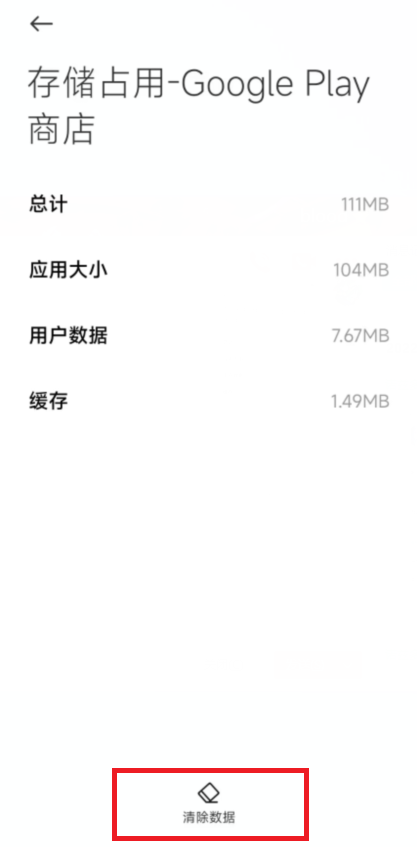 2、我们首先选择play商店,进入设置中选择清除所有的数据。
