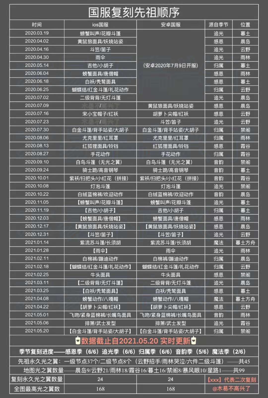 | 日期 | 复刻先祖 | 位置/兑换表 |
