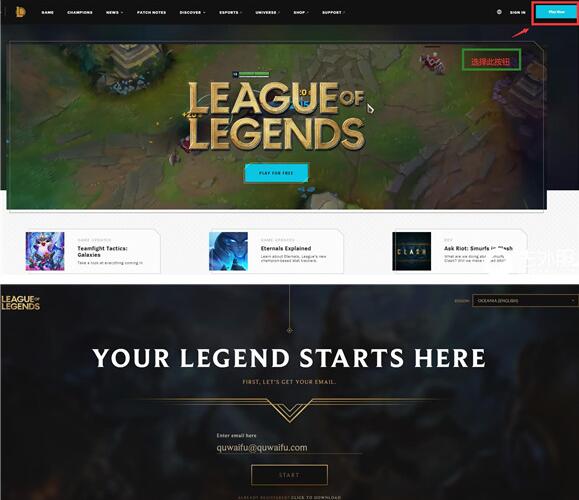 1、首先需要先打开进入到拳头的官网页面,点击注册按钮。