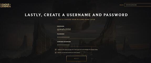 4、然后点击“NEXT”按钮,就会来到新的界面中填写账号信息,完成后进行提交。