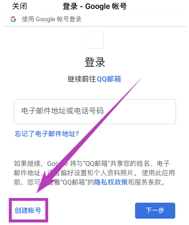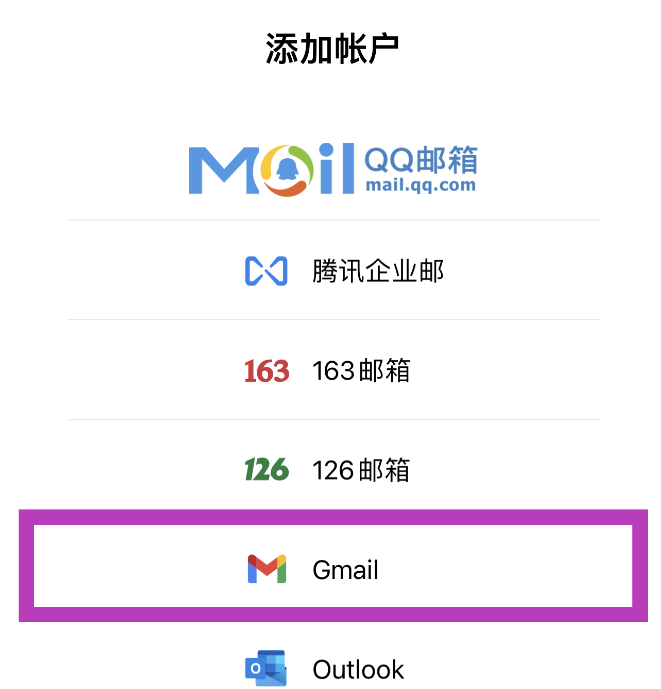 1、我们首先下载一个QQ邮箱,在QQ邮箱中选择“添加账户”,然后点击使用Gmail登录,这个Gmail其实就是谷歌邮箱了。