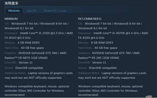 显卡:NVIDIA GTX 660或AMD Radeon HD 7950