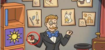 2.点击左边的箱子使图案全部都是太阳的形状,然后打开最上面的一个图案就可以获得一个红色的球,把红球给魔术师就会变成红苹果;