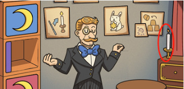 5.把魔术师口袋里面的棍子放在右边的烛台上面,就可以获得一根点燃的蜡烛;