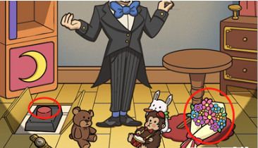1、首先把魔术师手里面的花朵往外拉就可以获得红色带子,点击魔术师的蝴蝶结就会飞出来一只蝴蝶;