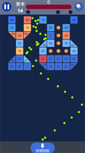 操作极为简单,只需滑动屏幕调整挡板位置,释放弹珠即可开始游戏。通过不断反弹击破上方砖块完成清除任务。掌握角度预判和节奏控制是通关关键。