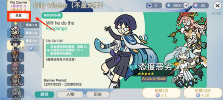 3、点击祈愿十次进行抽取,未出货将获得“大便”表情奖励,增加抽取次数可提升目标获取概率;