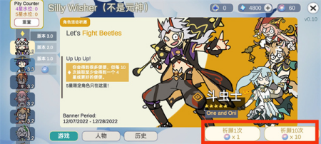2、进入主界面后,点击右下角按钮选择单抽或十连抽;