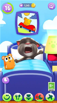 首次进入游戏后,请打开客厅中的箱子,迎接汤姆猫的到来。系统会实时提示其当前需求:若显示饥饿图标,需前往厨房将食物送入它口中;当马桶图标变红,表示需要如厕,点击即可完成;困倦时则引导它进入卧室休息,并关闭灯光助眠。睡觉中的汤姆猫还会打鼾,表情憨态可掬。